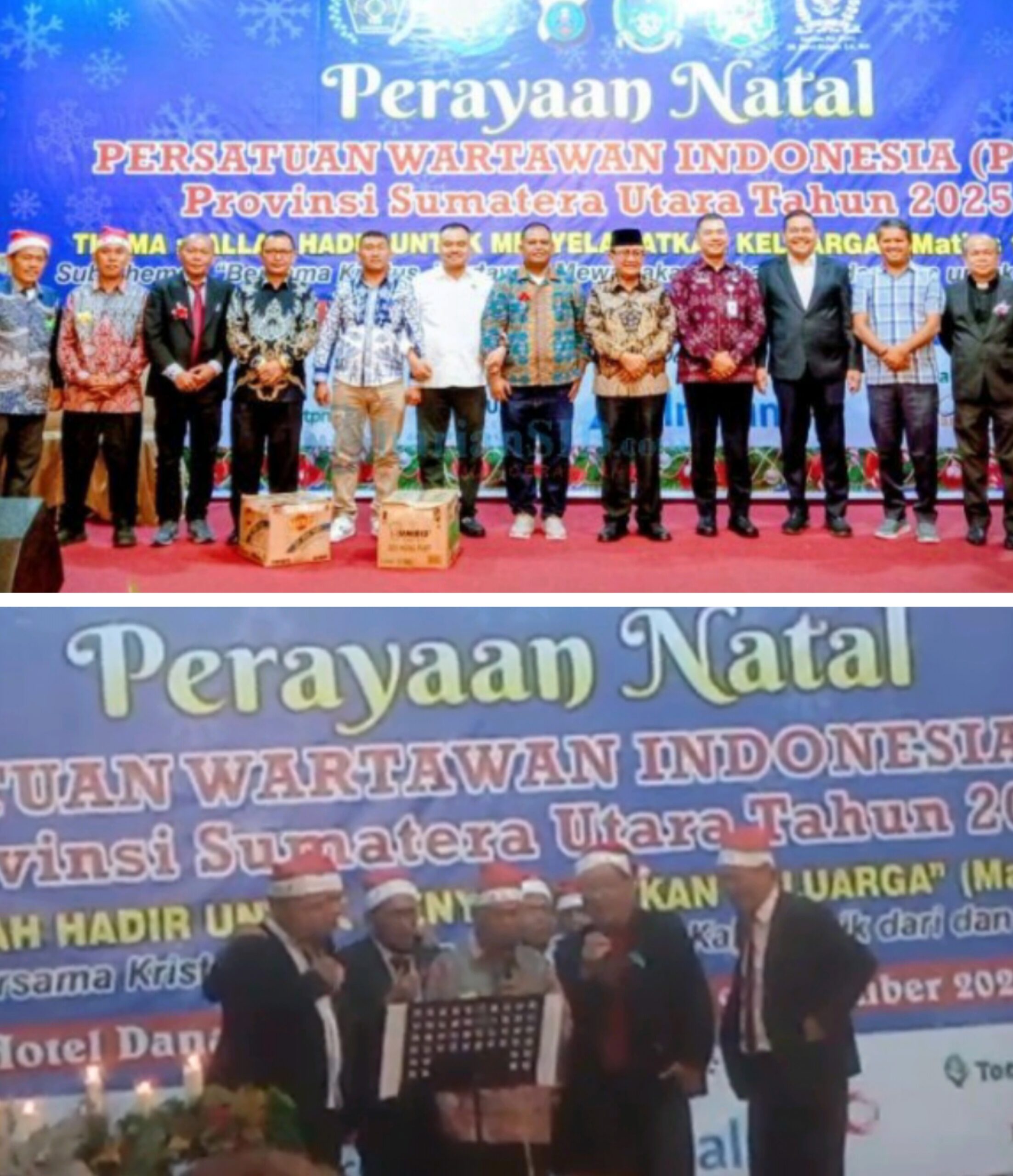 MEDAN – Perayaan Natal Persatuan Wartawan Indonesia (PWI) Sumatera Utara tahun 2025 yang digelar di Hotel Danau Toba Internasional, Jalan Imam Bonjol, Medan pada Jumat (19/12/25) berlangsung khidmat dan penuh sukacita.