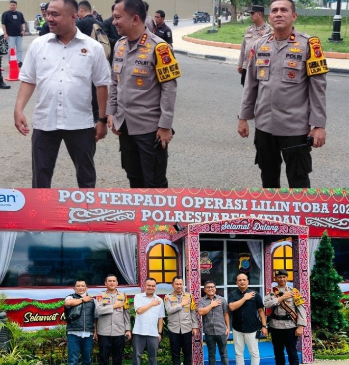 Kali ini, Kapolrestabes Medan mengecek Pospam bersama Ketua Persatuan Wartawan Indonesia (PWI) Sumatera Utara, H Farianda Putra Sinik SE di Pos Terpadu Operasi Lilin Toba 2025 Polrestabes Medan kawasan Lapangan Merdeka Medan, Sabtu (20/12/25).