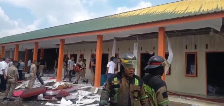 TERBAKAR: Asrama mahasiswa Institut Teknologi Sawit Indonesia (ITSI) di Jalan Rumah Sakit Haji, Desa Kenangan Baru, Kecamatan Percut Sei Tuan, Kabupaten Deli Serdang, Sumatera Utara terbakar, Senin (5/1/2026). (ist)