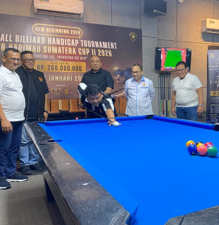 MEDAN – Ketua Umum KONI Sumatera Utara Kolonole TNI (Purn) Hatunggal Siregar membuka secara resmi 9 Ball Billiard Handicap Tournament 76 Harimau Sumatera Cup II Tahun 2026, Sabtu (10/01) di Labewa Cue Sport Jalan Mataram No 4 Medan.