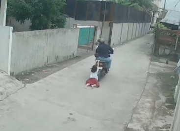 Ia bahkan sempat memegang besi behel (rangka) sepeda motor sambil berusaha menghalangi pelaku kabur.
