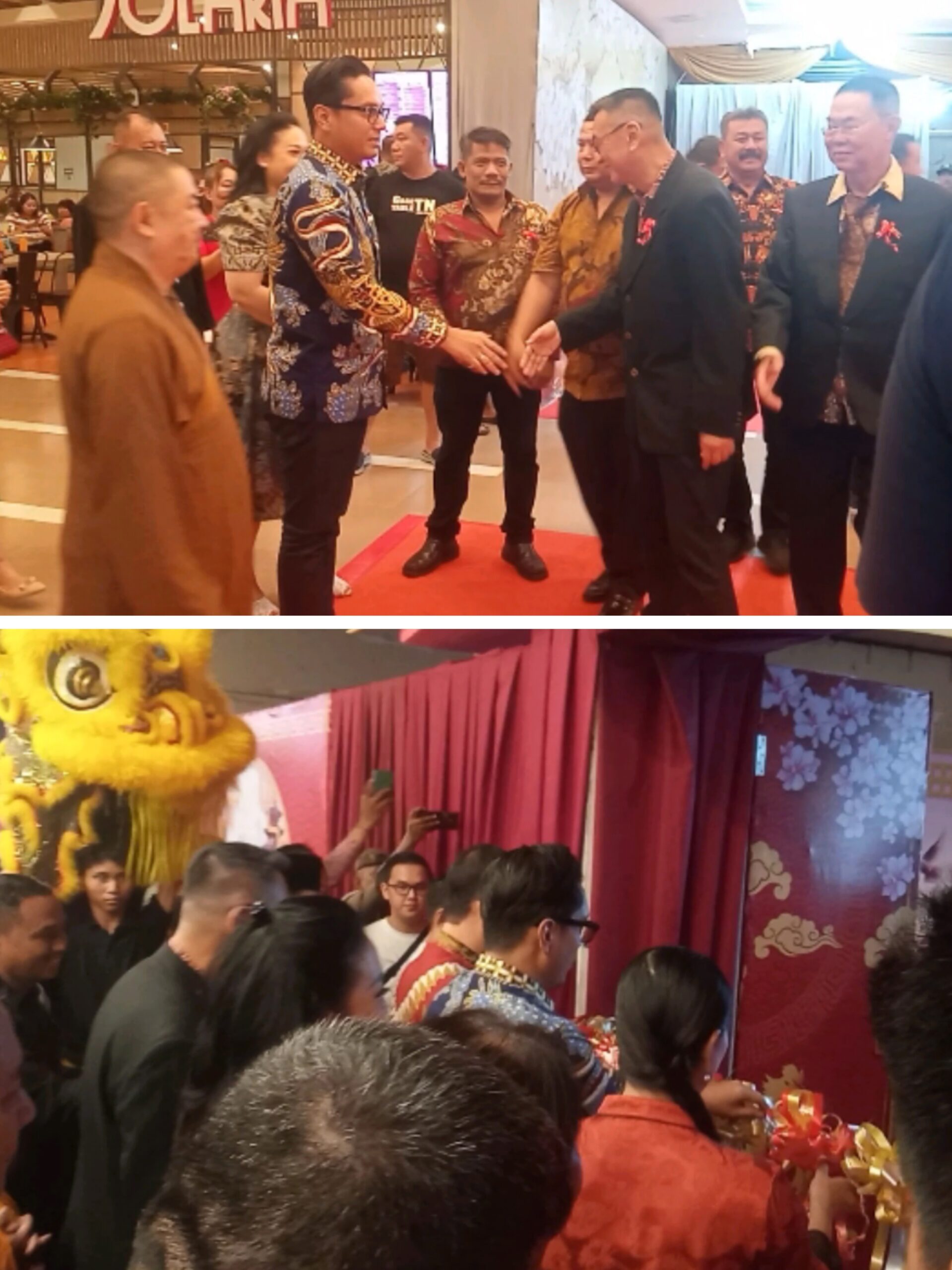 BUKA: Wali Kota Medan Rico Tri Putra Bayu Waas saat disambut panitia. Dan bawah, Wali Kota Medan saat menggunting pita tanda diresmikannya Fa Hua Exhibition Imlek Fair 2026. (ist)