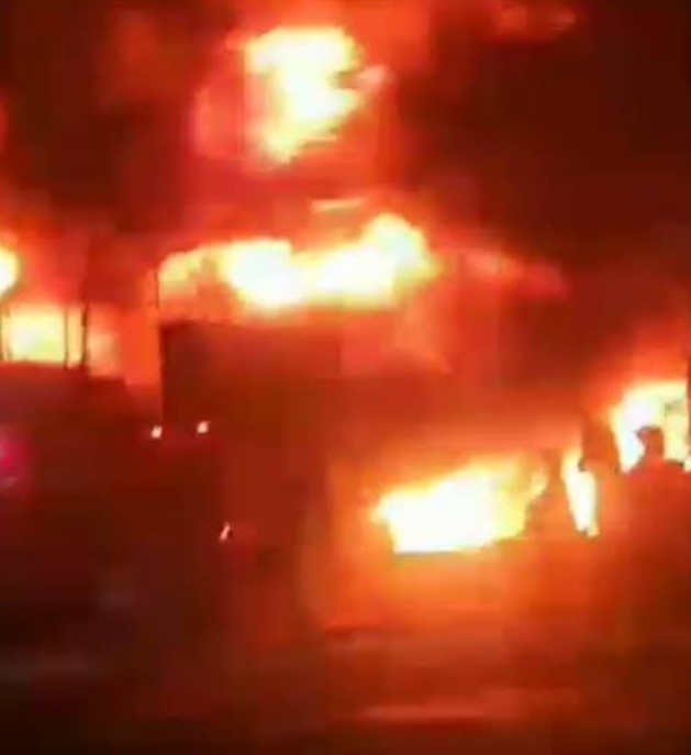 Kebakaran berlangsung hingga Rabu dini hari. Arus lalu lintas di lokasi harus ditutup.
