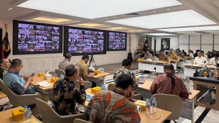 RAPAT: Polri rapat koordinasi bersama Kementan, Perum Bulog, BPK, Asosiasi Pabrik Pakan Ternak dan Himpunan Bank Milik Negara (Himbara) dalam rangka memperkuat ketahanan pangan nasional. (ist)