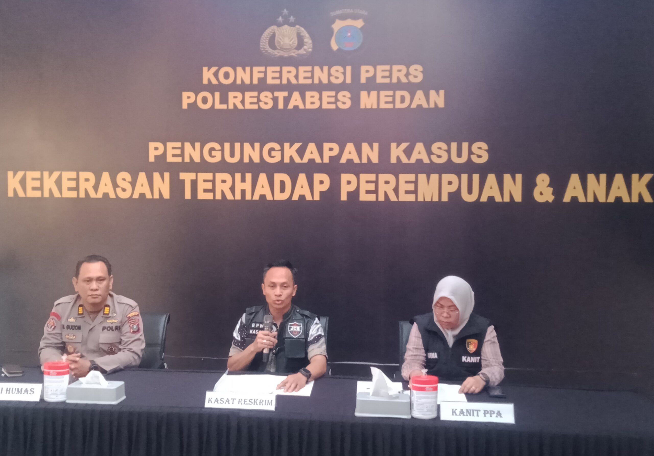 Kasat Reskrim Polrestabes Medan, AKBP Bayu Putro Wijayanto didampingi, Kanit PPA, Iptu Dearma Agustina Sinaga dan Kasi Humas, AKP N Gultom dalam keterangannya menyampaikan tersangka berinisial AM alias Abi (31) pemilik sekaligus pengajar di ponpes tersebut.