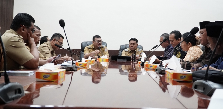 TERIMA: Bupati Deli Serdang, dr H Asri Ludin Tambunan bersama Wakil Bupati, Lom Lom Suwondo SS saat menerima kunjungan pengurus Dewan Pendidikan Deli Serdang 2025–2030 di Ruang Rapat, Lantai II, Kantor Bupati, Selasa (24/02/2026).