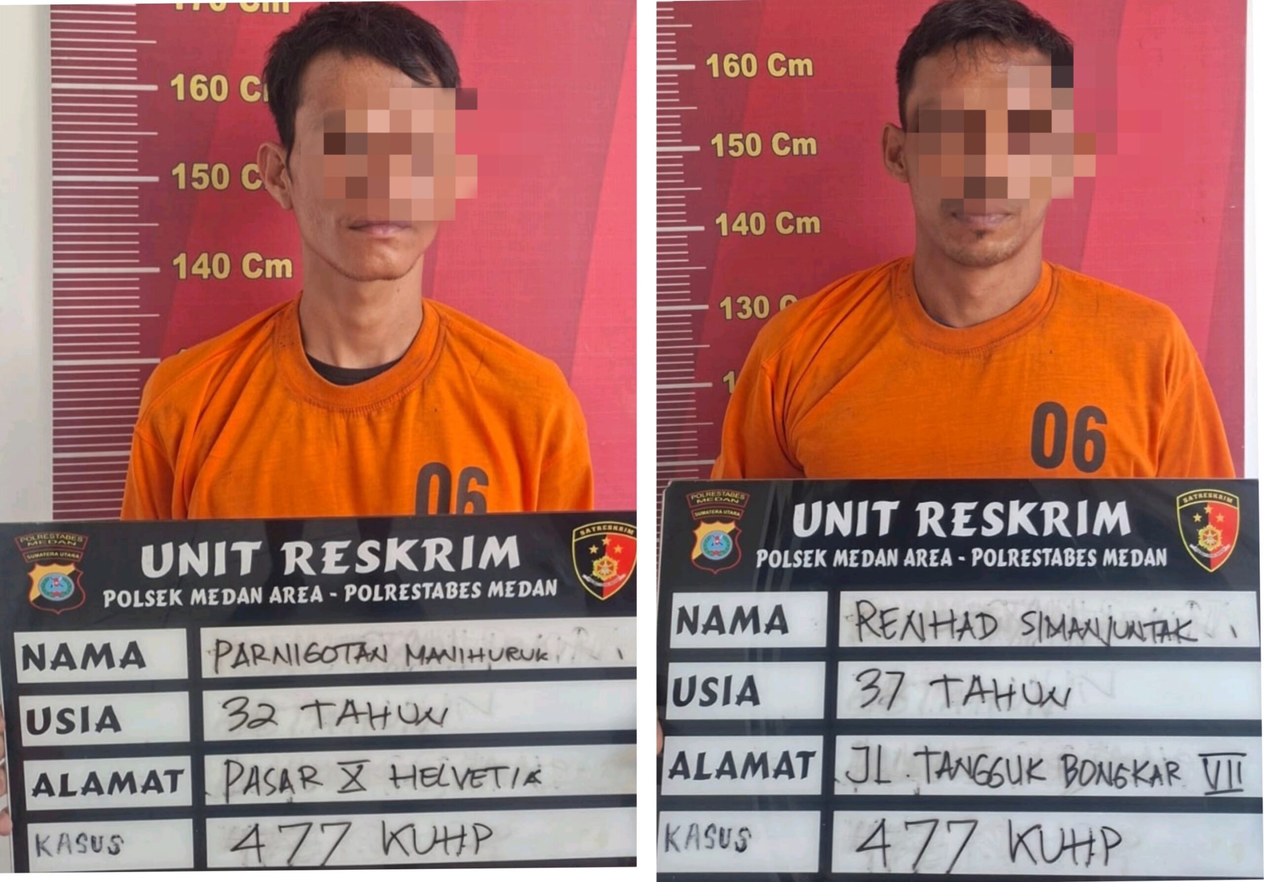 Kedua pelaku yakni Parningotan Maniuruk alias Siongot (32) dan Rainhat Simanjuntak alias Ucok (37) ditangkap di dua lokasi berbeda.