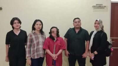 TANGKAP: Githa Rubyamah (baju tahanan merah) agen pekerja migran Indonesia secara ilegal yang ditangkap Polisi…