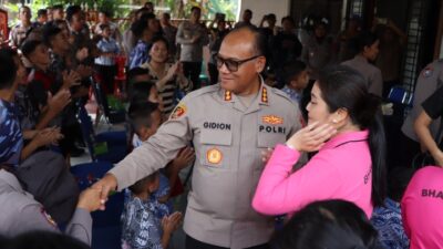 KUNJUNGI: Kapolrestabes Medan Kombes Pol Dr. Gidion Arif Setyawan dan istri, Ny. Luciana Gidion mengunjungi…