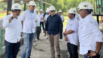 KUNJUNGI: Direktur Utama PTPN IV PalmCo Jatmiko Santosa saat mengunjungi Pabrik Kelapa Sawit di Sumatera…