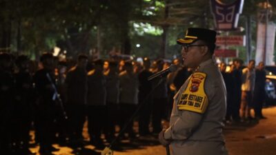 PIMPIN: Kapolrestabes Medan Kombes Pol Gidion Arif Setyawan memimpin apel kegiatan rutin yang ditingkatkan (KRYD)…