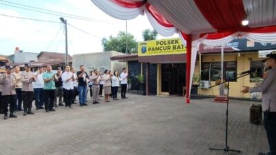 PIMPIN: Kapolsek Pancur Batu Polrestabes Medan Kompol H. Djanuarsa S.H pimpin apel pagi. PANCURBATU –…