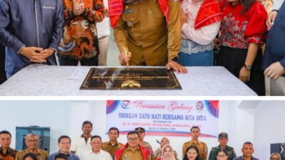 RESMIKAN: Bupati Asri Tambunan saat meresmikan Gedung Yayasan Satu Hati Bersama Kita Bisa: Wujud Kebersamaan…