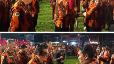 SERAHKAN: H Musa Rajekshah saat menyerahkan pataka kepada Junaidi (atas). Dan bawah, Sekwil MPW PP…