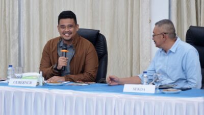 ARAHAN: Gubernur Sumatera Utara (Sumut) Muhammad Bobby Afif Nasution memberikan arahan dan bimbingan sekaligus menutup…