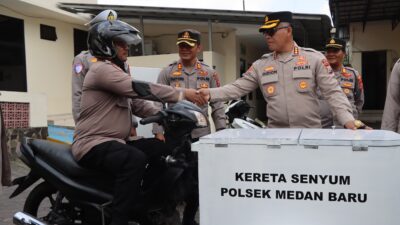 LUNCURKAN: Kapolrestabes Medan Kombes Pol Gidion Arif Setyawan meluncurkan Kereta Senyum Polsek Medan Baru. MEDAN…