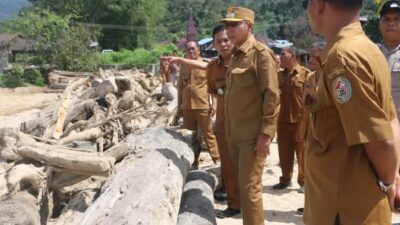 TINJAU : Bupati Taput, Dr. Jonius Taripar Parsaoran Hutabarat, S.Si., M.Si saat menininjau wilayah terdampak…