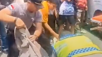 LEPAS: Kapolsek Medan Tuntungan, Iptu Eko Sanjaya saat mengevakuasi jasad korban kecelakaan lalu lintas, di…