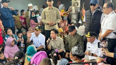 TINJAU: Wakil Gubernur Sumut, Surya mendampingi Wakil Presiden RI Gibran Rakabuming meninjau korban banjir di…