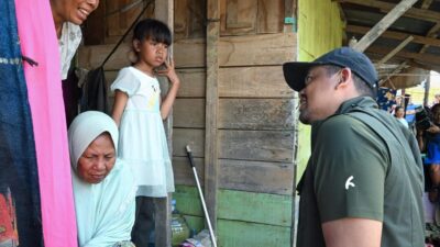 TINJAU: Gubernur Sumut, Bobby Nasution meninjau korban terdampak banjir di Kecamatan Padangtualang, dan Kecamatan Tanjungpura,…