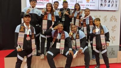MENYALA: Ketua KONI Sumut Hatunggal Siregar foto bersama dengan atlet Sambo. (ist) KUDUS – Tim…