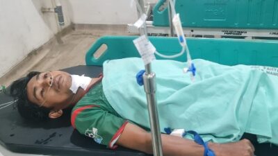 DITIKAM: Korban saat menjalani perawatan. MEDAN – Tak terima anaknya dilarang main petasan, seorang pria…