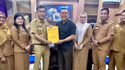SERAHKAN: Inspektorat Pemkab Deli Serdang, H Edwin Nasution SH MSi CGCAE didampingi sejumlah pejabat Inspektorat…