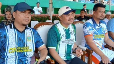 SIAP: Gubernur Sumut Bobby Nasution dan Ketua PWI Sumut Farianda Putra Sinik, menonton pertandingan Mini…