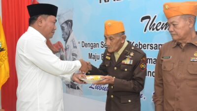 BERIKAN: Wabup Deli Serdang, Lom Lom Suwondo SS memberi tumpeng kepada seperingatan HUT ke-69 LVRI…