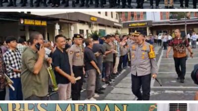 APEL SABUK: Kapolrestabes Medan Kombes Pol Dr. Jean Calvijn Simanjuntak, S.I.K., M.H saat foto bersama…