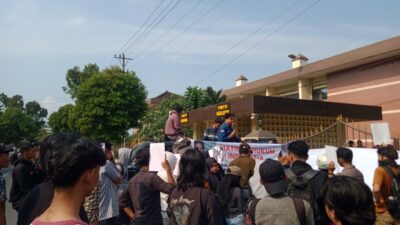 DEMO : Puluhan mahasiswa yang mengatasnamakan Sahabat Erika saat demo ke Polrestabes Medan. MEDAN –…