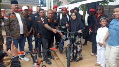 SERAHKAN: Ketua DPD GRIB Jaya Sumut Samsul Tarigan saat memberikan hadiah sepeda kepada anak panti…