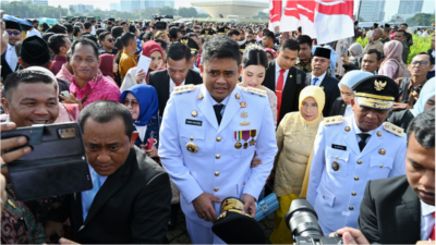 DILANTIK : Gubernur Sumut Bobby Nasution (tengah) bersama isterinya Kahiyang Ayu dan Wakil Gubernur Sumut…