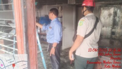 TERBAKAR : Petugas pemadam kebakaran turun ke lokasi. MEDAN – Kebakaran melanda Universitas HKBP Nommensen…