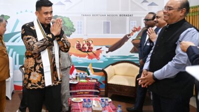 TERIMA: Gubernur Sumatera Utara Muhammad Bobby Afif Nasution didampingi Ketua Kamar Dagang & Industri (KADIN)…