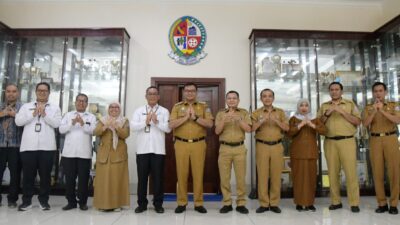 TERIMA: Bupati Deli Serdang, dr H Asri Ludin Tambunan foto bersama dengan Kepala Badan Pusat…