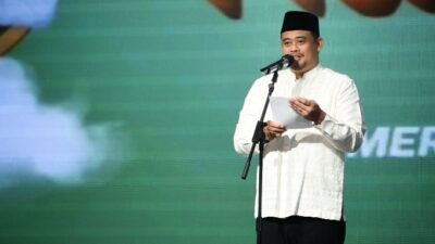 HADIRI: Gubernur Sumut Bobby Nasution menghadiri Peringatan Maulid Nabi Muhammad SAW di Lingkungan Pemprov Sumut…