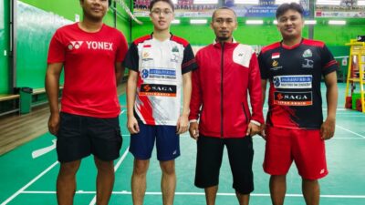 FOTO BERSAMA: Darren Gerrard foto bersama Zul Imri, Linja dan Saiful Siregar. MEDAN – Pebulutangkis…