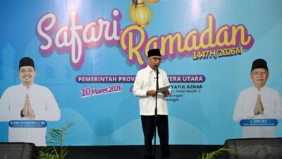SAFARI RAMADHAN: Wakil Gubernur Sumatera Utara (Sumut) Surya bersama Bupati Serdangbedagai Darma Wijaya didampingi sejumlah…