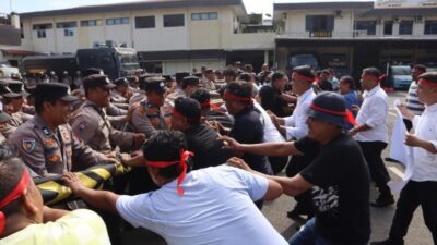 SIMULASI: Sebanyak 300 personel Polrestabes Medan dilibatkan dalam simulasi penanganan aksi unjuk rasa. MEDAN –…