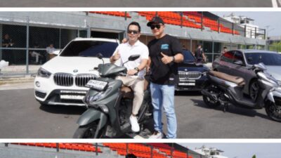 FOTO BERSAMA : Foto atas, sejumlah kru yang menguji kecepatan Yamaha Gear Ultima diabadikan bersama….