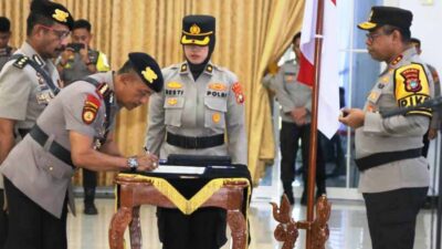 PIMPIN: Kapolda Papua Barat, Irjen Pol Johnny Eddizon Isir, SIK, MTCP memimpin sertijab sejumlah Pejabat…