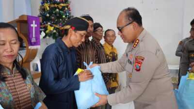BERIKAN: Kapolrestabes Medan Kombes Pol Gidion Arif Setyawan dan Ketua Pengurus Cabang (PC) Bhayangkari Kota…