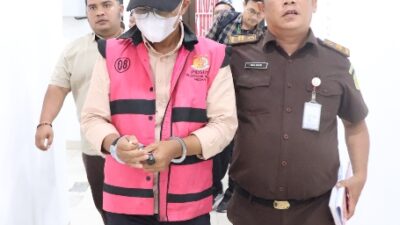 DITAHAN : Tersangka KAL, selaku Kasi Sarpras pada Kantor Camat Medan Polonia akhirnya ditahan penyidik…