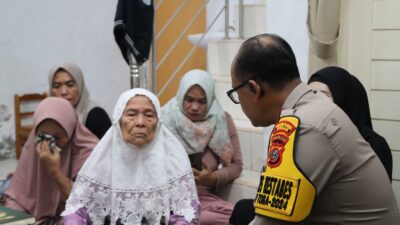 MELAYAT: Kapolrestabes Medan Kombes Pol Gidion Arif Setyawan melayat ke rumah duka tempat jenazah Ps…