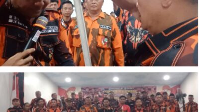 TERIMA: Sutejo saat menerima pataka dari Wagiman ‘Buang’. Bawah, pengurus MPC, PAC dan Ketua Ranting…