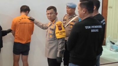 GEREBEK: Kapolrestabes Medan, Kombes Pol Teddy Marbun saat menginterogasi para geng motor. MEDAN – Tim…