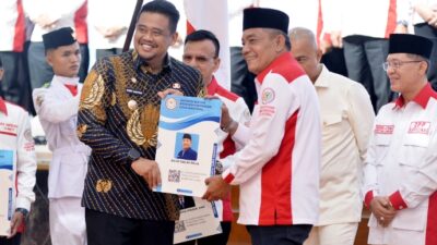 HADIRI: Gubernur Sumatera Utara (Sumut) Bobby Nasution menghadiri dan memberi sambutan pada Pengukuhan Pengurus DPD…