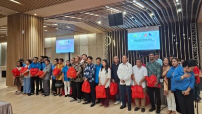 BERIKAN: Ketua MPKW Sumut–Aceh Dr RE Nainggolan MM dan Ketua PWI Sumut Farianda Putra Sinik…