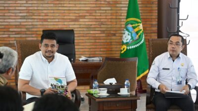 TERIMA : Gubernur Sumatera Utara (Sumut) Muhammad Bobby Afif Nasution didampingi sejumlah OPD saat menerima…